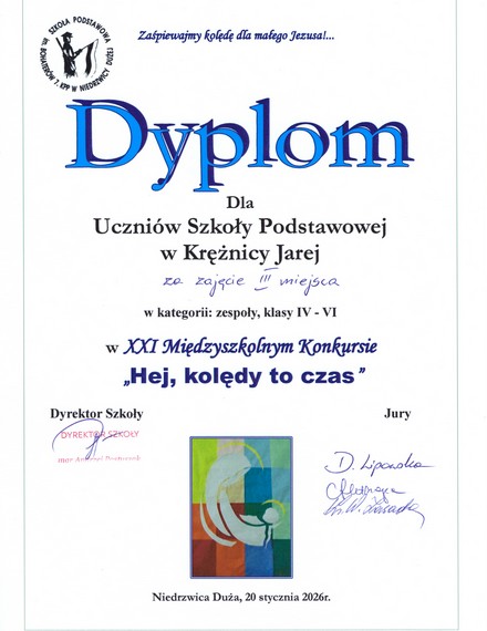 Serdecznie dziękujemy za piękne reprezentowanie naszej szkole uczennicom najmłodszej kategorii: zespół- Aniela Sprawka, Olga Mączka, Olga Kowal, Maja Jasińska, Lena Pilaszewska